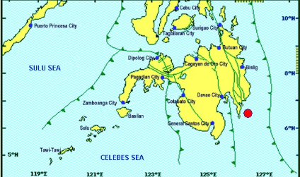 The Philippine Institute of Volcanology and Seismology said the quake, of tectonic origin, hit 46 kilometers southeast of Governor Generoso at 1:36 a.m.