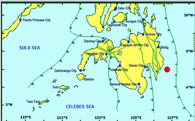 The Philippine Institute of Volcanology and Seismology said the quake, of tectonic origin, hit 35 kilometers southeast of Tarragona at 2:53 a.m.