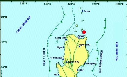The Philippine Institute of Volcanology and Seismology said the quake, of tectonic origin, hit 37 kilometers northwest of Santa Ana at 3:57 p.m.