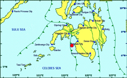 The Philippine Institute of Volcanology and Seismology said the quake, of tectonic origin, hit 50 kilometers southwest of South Upi at 6:08 a.m.