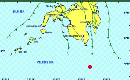 The Philippine Institute of Volcanology and Seismology said the quake, of tectonic origin, hit 191 kilometers southeast of Sarangani at 1:36 p.m.