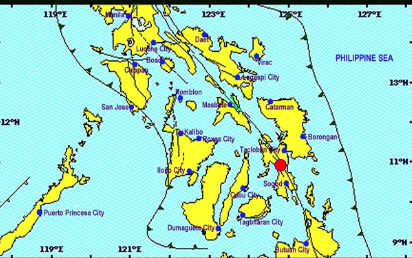 The Philippine Institute of Volcanology and Seismology said the quake, of tectonic origin, hit 12 kilometers southwest of Burauen at 1:14 p.m.