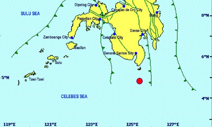 The Philippine Institute of Volcanology and Seismology said the quake, of tectonic origin, hit 68 kilometers southwest of Sarangani at 4:34 a.m.