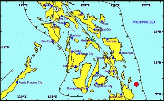 The Philippine Institute of Volcanology and Seismology said the quake, of tectonic origin, hit 38 kilometers southeast of General Luna at 11:28 a.m.