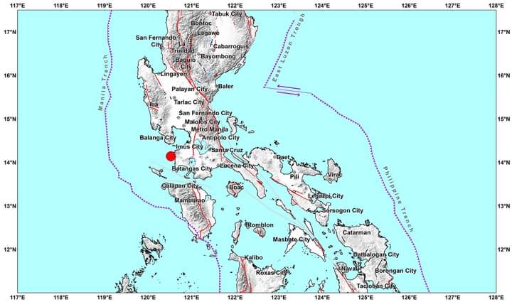 The Philippine Institute of Volcanology and Seismology said the quake, which struck at 12:58 p.m., has its epicenter 13 kilometers northwest of Nasugbu.