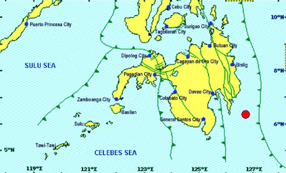 The Philippine Institute of Volcanology and Seismology said the quake struck 83 kilometers southeast of General Generoso at 6:55 a.m.
