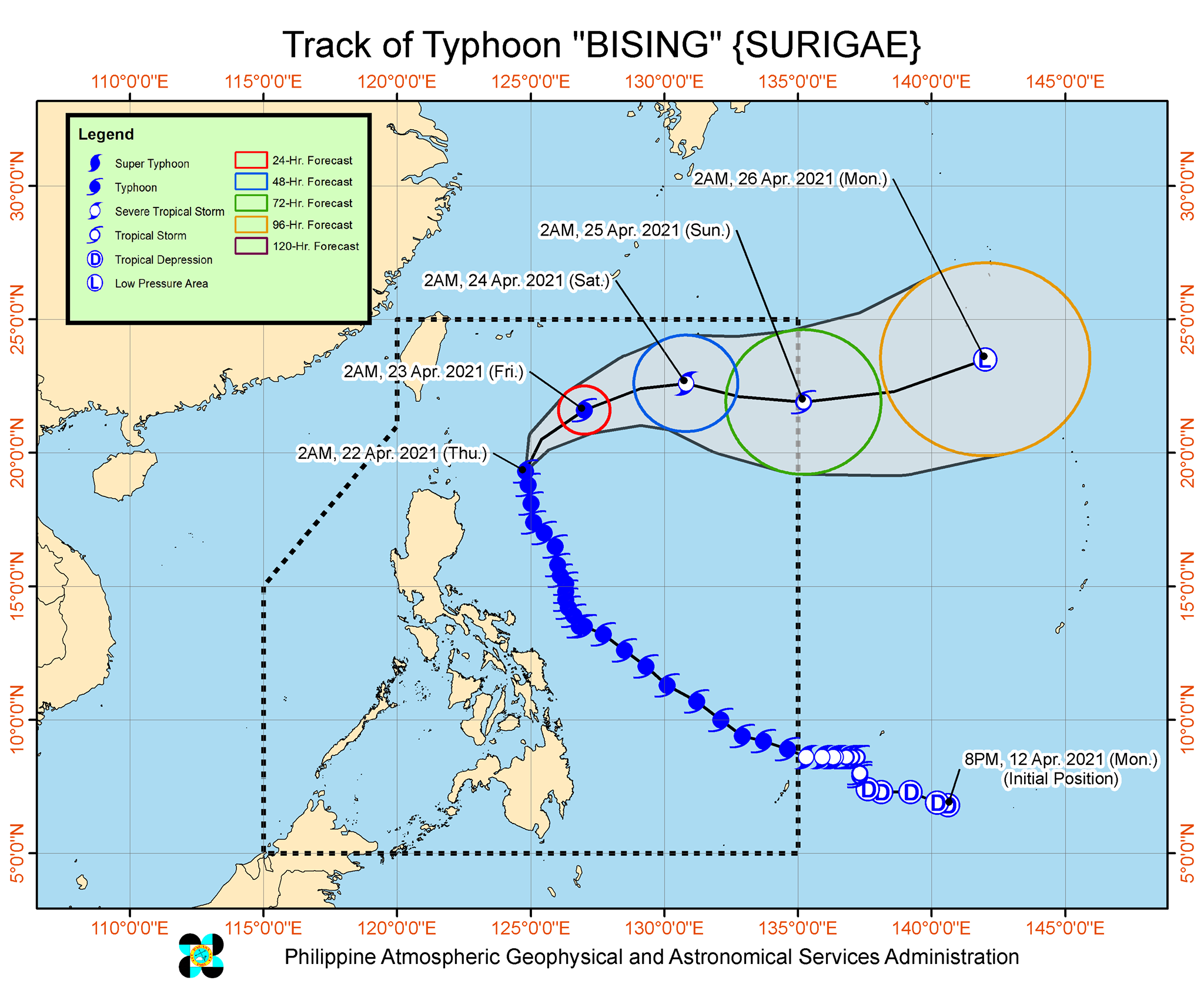The typhoon is forecast to exit the Philippine Area of Responsibility on Saturday evening or Sunday morning (April 25).