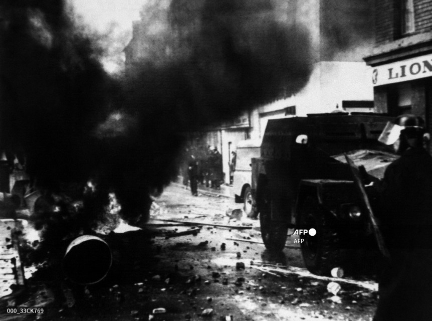 Violence explodes after January 1972 when 13 people are killed on “Bloody Sunday” after British soldiers open fire on a peaceful Catholic civil rights march in Londonderry.