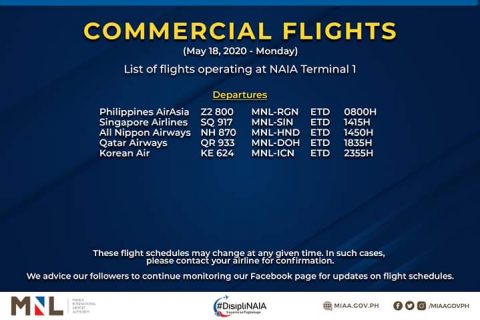 (Eagle News)–The Manila International Airport Authority has released its list of operational commercial flights.