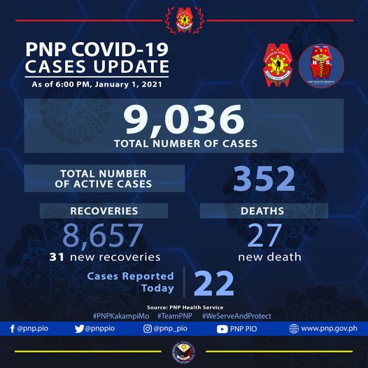 The Philippine National Police with the additional recoveries, the PNP COVID-19 recovery total rose to 8657.