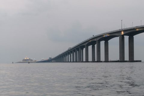 A general view shows a section of the Hong Kong-Zhuhai-Macau Bridge (HKZM) on October 22, 2018.  It is the world’s longest sea-bridge connecting Hong Kong, Macau and mainland China . (Photo by Anthony Wallace / AFP)
