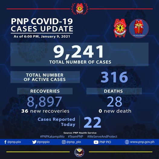 Twenty-two more cases, however, also pushed the PNP COVID-19 total to 9241.