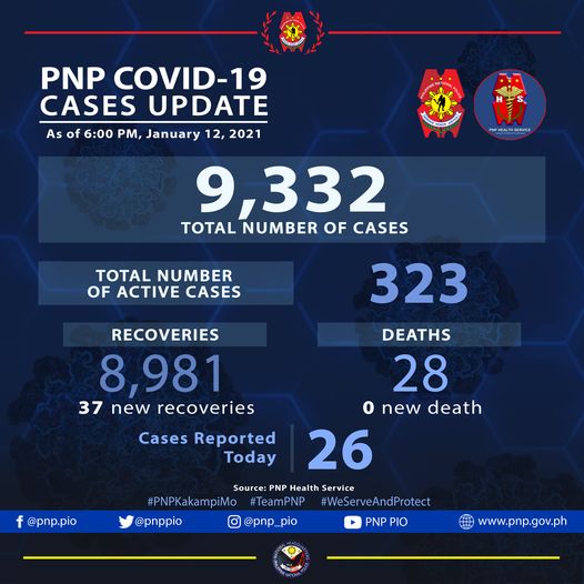 Twenty-six additional cases pushed the PNP COVID-19 total to 9332.