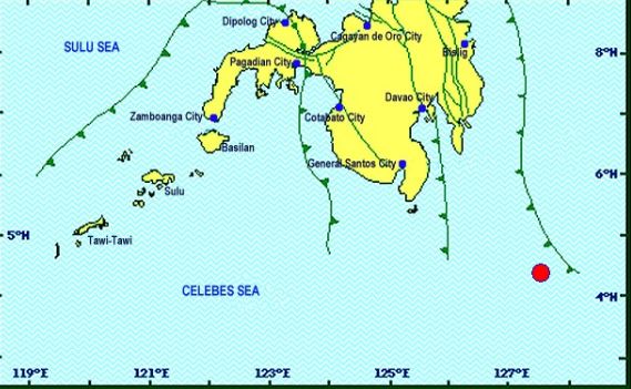 The Philippine Institute of Volcanology and Seismology said the quake, of tectonic origin, hit 260 kilometers southeast of Sarangani at 1:14 p.m.