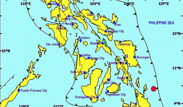The Philippine Institute of Volcanology and Seismology said the quake hit 36 kilometers northeast of General Luna at 5:55 p.m.