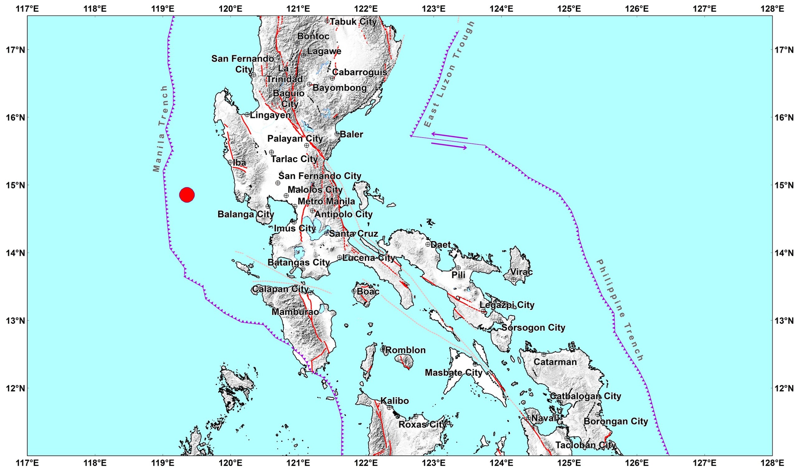 The Philippine Institute of Volcanology and Seismology said the quake hit at 1:34 a.m. at 80 kilometers off San Antonio.
