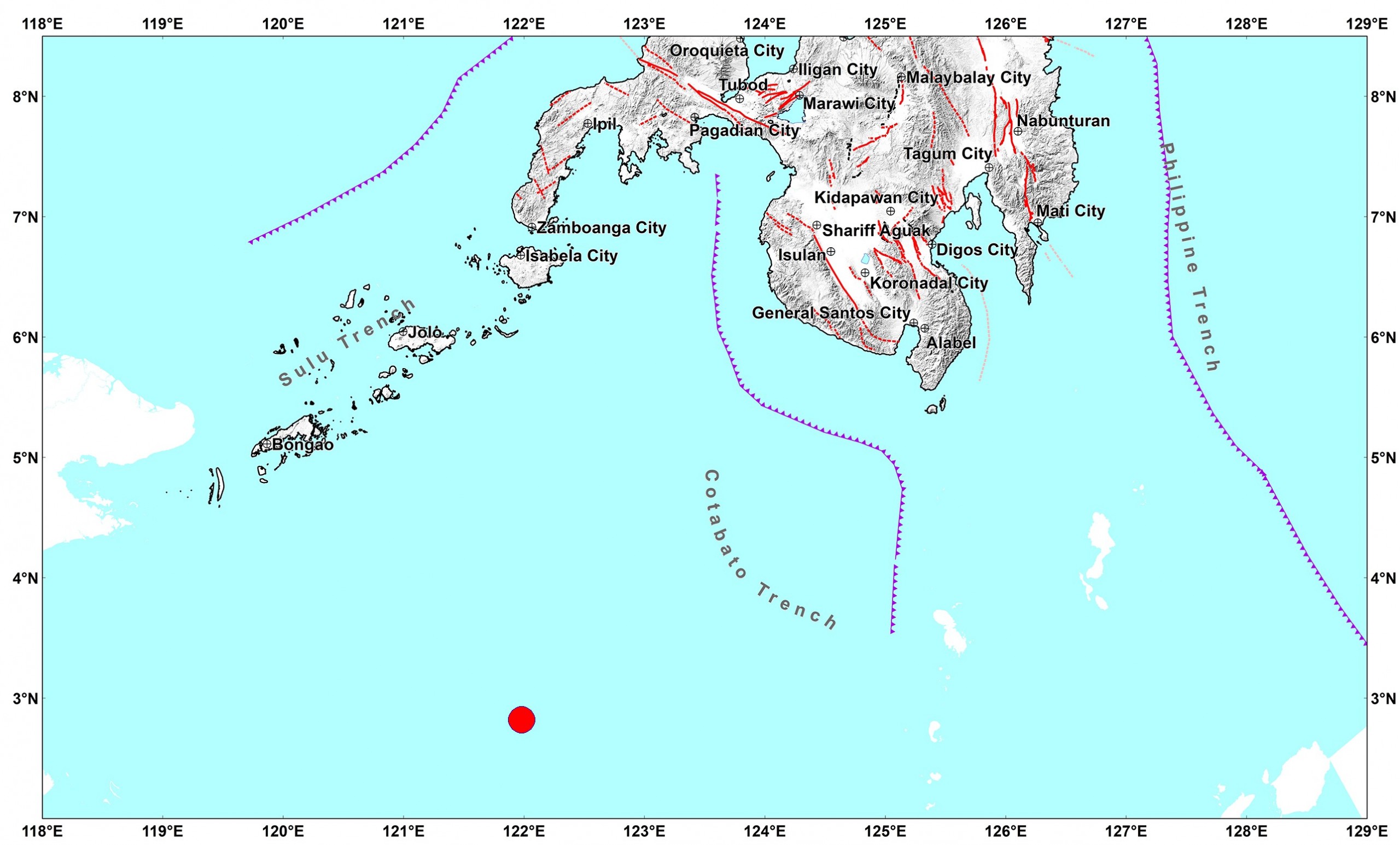 It had its epicenter 311 kilometers southeast of South Ubian.