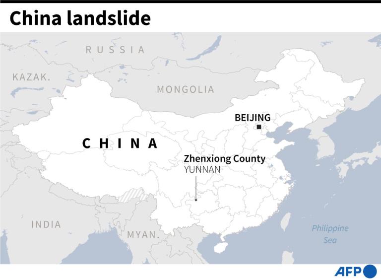 Map of China locating Zhenxiong County in southwestern Yunnan provice where dozens of people were buried in a landslide on Monday. – AFP / AFP / JANIS LATVELS
