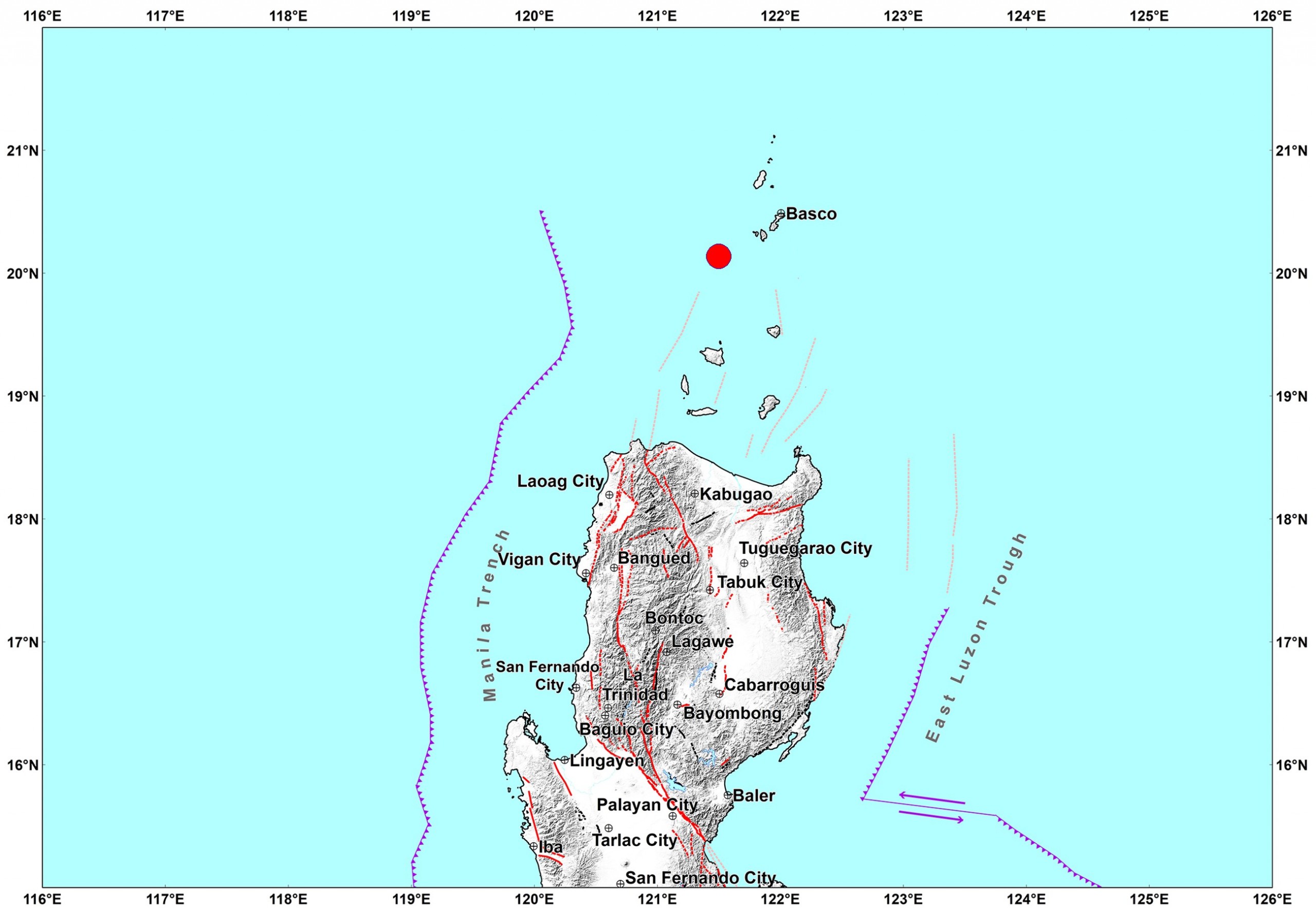 It had its epicenter 45 kilometers southwest of Sabtang.
