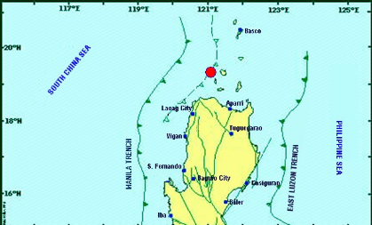 The Philippine Institute of Volcanology and Seismology said the quake hit 38 kilometers northwest of Calayan at 4:59 p.m.