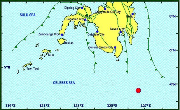 The epicenter was some 236 kilometers southeast of Sarangani.