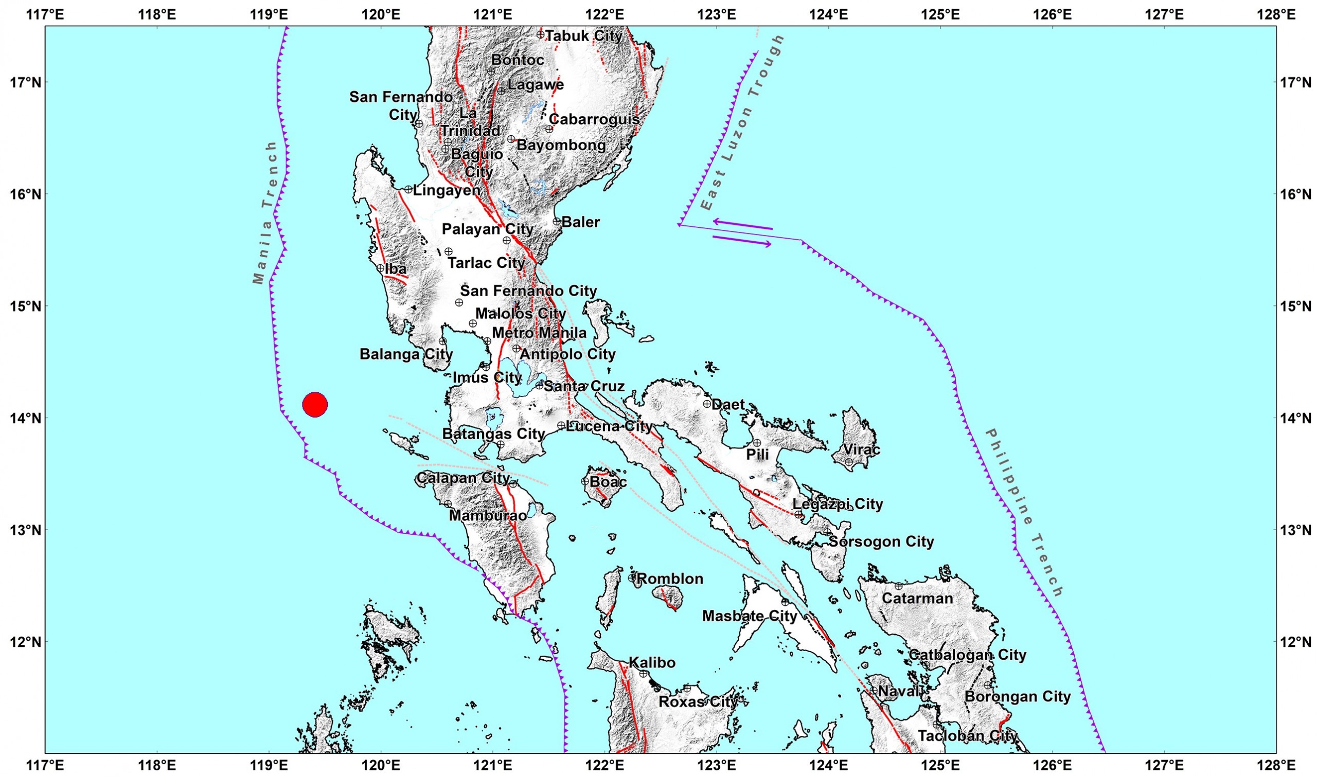 The epicenter of Tuesday’s quake was 82 kilometers northwest of Lubang.
