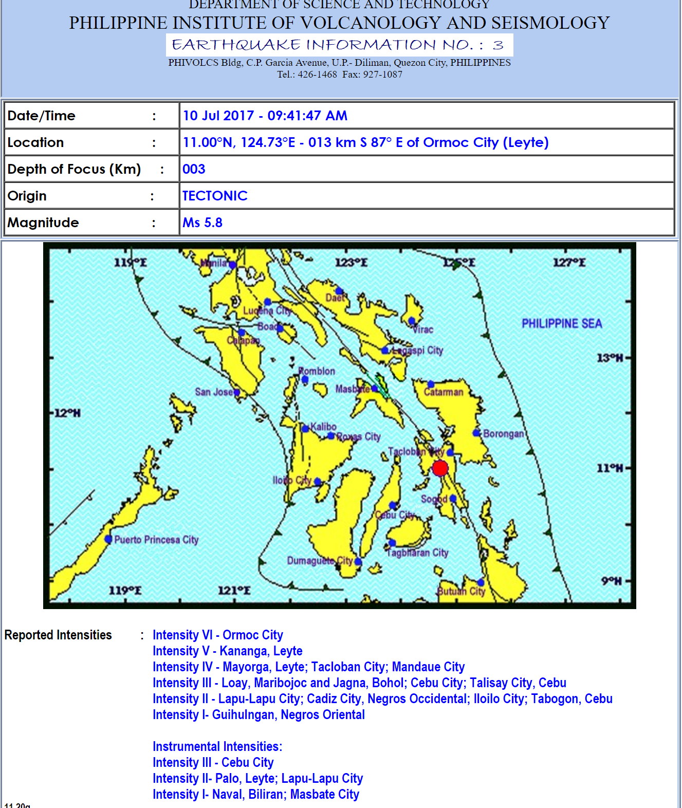 PHIVOLCS has recorded numerous aftershocks in Leyte since the July 6 earthquake but the 5.8 magnitude aftershock was so far the strongest of them.