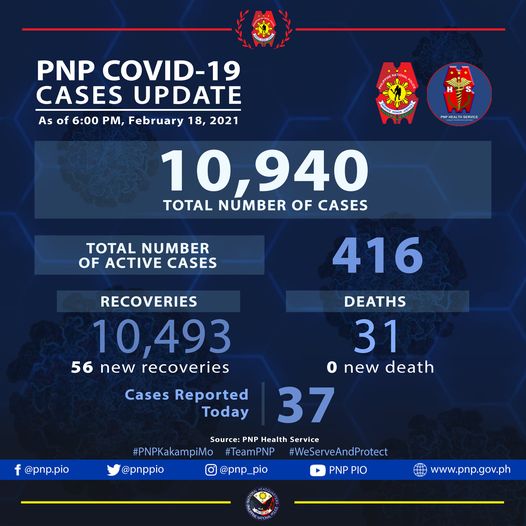 Thirty-seven additional COVID-19 cases also pushed the PNP COVID-19 total to 10940.