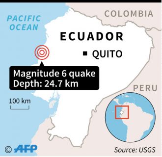 QUITO, Ecuador (AFP) — A 6.0-magnitude earthquake shook coastal Ecuador Sunday, opening cracks in walls and cutting electricity in the province of Manabi, authorities said.