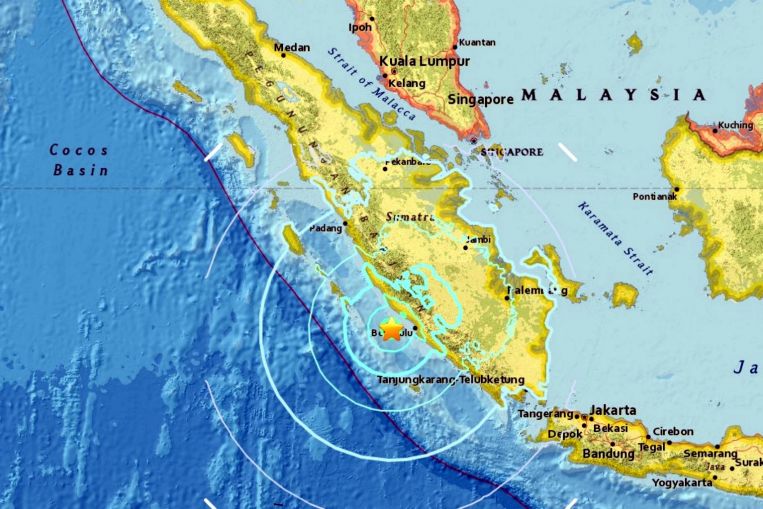 The quake hit at a depth of 35 kilometers (22 miles) at 10:08 am (0308 GMT) 73 kilometers west of Bengkulu, according to the United States Geological Survey.