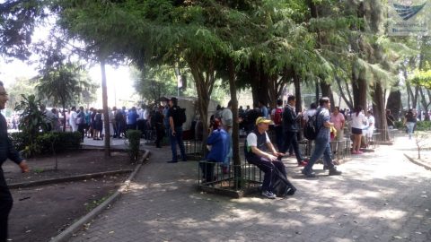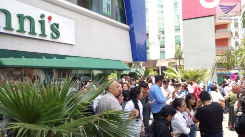 Locals and tourists, still in shock, await for streets in Centro Comercio to reopen. Roads are jammed and vehicles are trapped in parking structures as another quake devastates Mexico. (Photo by Arnel Guinto, Eagle News)Forum Buenavista mall catches fire after a 7.1 quake shakes Mexico City today. (photo by Liliana Tenorio)Local police led residents to the Jardin Ramon Lopez Velarde park to keep them away from Centro Medico Nacional XXI after reports of a gas leak. (photo by Arnel Guinto, Eagle News)Reports of a gas leak at a local hospital force people into the streets. (Photo by Arnel Guinto, Eagle News)
