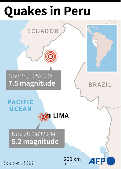 LIMA, Peru (AFP) — A 7.5-magnitude earthquake struck northern Peru on Sunday, destroying buildings including a church tower, injuring at least 10 people and sending shock waves across the region.