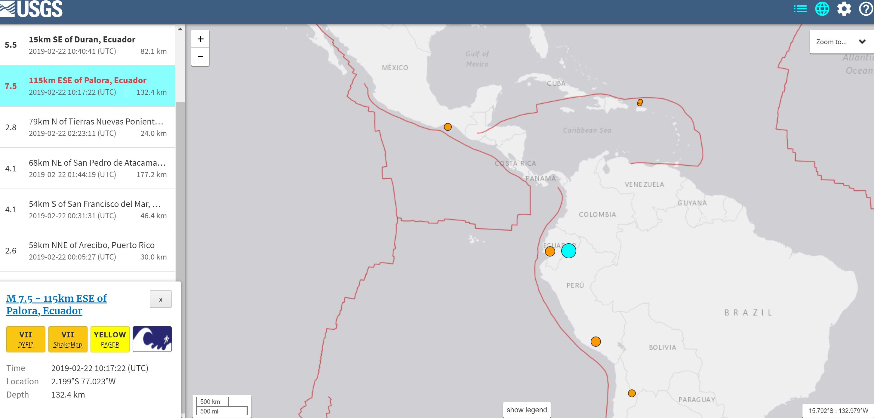 (Eagle News) — A magnitude 7.5 rocked Ecuador, 115 kilometers east southeast of the town of Palora in the Morona Santiago province on Friday, just before dawn, at 4:17 a.m. (6:17 p.m. Philippine time, 10:17 UTC or Coordinated Universal Time)