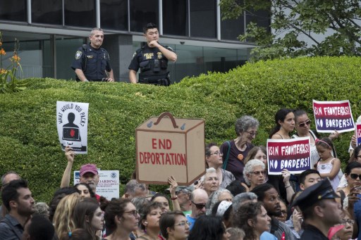 As the deadline neared, dozens of families with children gathered for a sit-in on Capitol Hill, while Democratic lawmakers blasted President Donald Trump’s “zero tolerance” border policy as un-American.