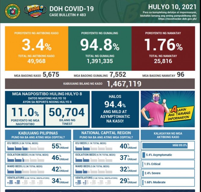 (Eagle News) – The Philippines recorded 5,675 new COVID-19 cases on Saturday, bringing to 1,467,119 the total confirmed cases recorded so far in the country since the pandemic began.