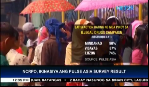 Pinakamataas na naitala ang satisfaction rating sa Mindanao, kung saan 90 percent ng mga residente rito ang mas feeling safe ngayon kumpara noong nakaraang taon dahil sa kampanya ng gobyerno kontra droga.