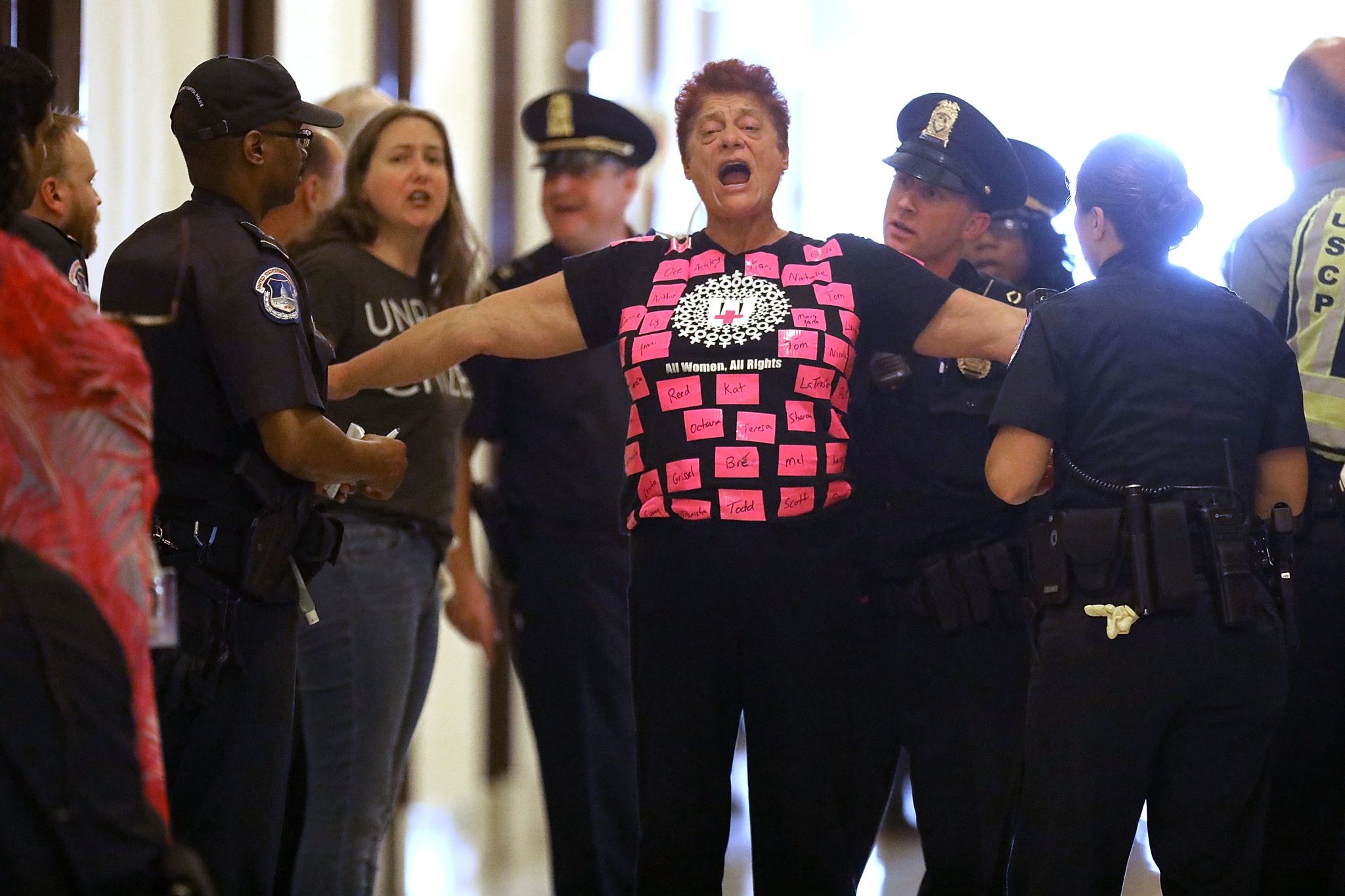Capitol police said in a statement that 32 men and 48 women were placed under arrest Monday for “unlawful demonstration activities.”
