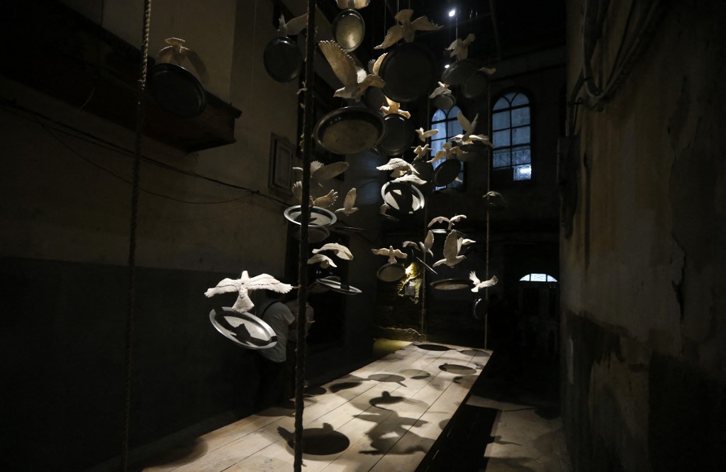 The doves have been incorporated into student artworks, including an installation by 24-year-old Hammoud Radwan.