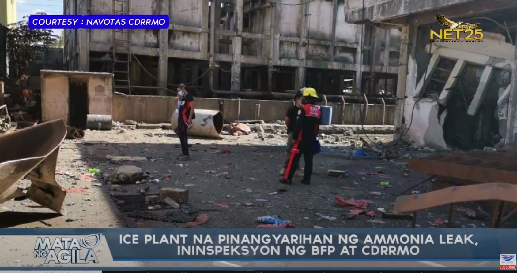 The Burea of Fire Protection and the City Disaster Risk Reduction and Management Office of Navotas City inspected the site of the ammonia leat inside the T.P. Marcelo ice plant on Thursday morning, Feb. 4. They found busted tanks and walls destroyed as if by an explosion.