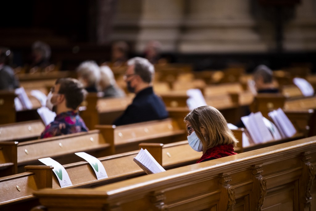 In line with rules agreed by places of worship across Germany, there was no singing to prevent the spread of the virus through droplets from an infected person’s mouth.