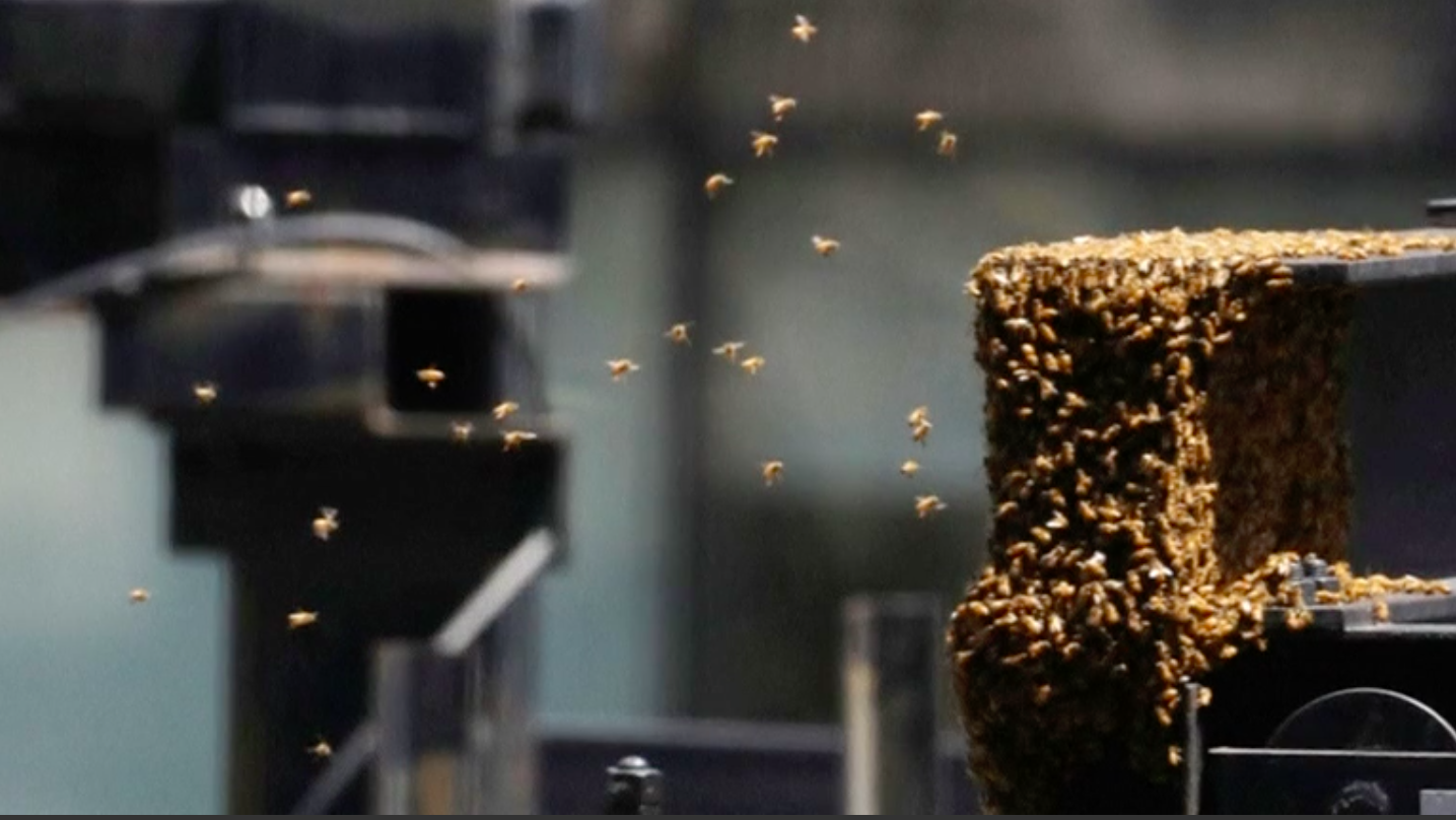 “The bees weren’t colonizing,” Coté said. “The bees were on a nearby hotel and they were probably not very well managed and they left like Lucifer, the most beautiful angel left heaven, took a third of the angels with him, these bees left with their queen. They were looking for a new home as a temporary station. They landed on that old New York Times building in Times Square.”