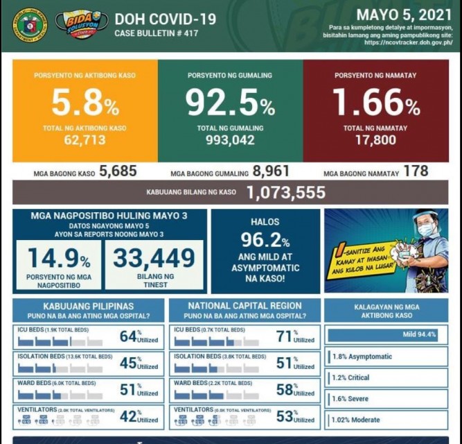 There were however more COVID-19 deaths reported on Wednesday, May 5, at 178, compared to Tuesday’s 97 (May 4) and Monday’s 94 (May 3).