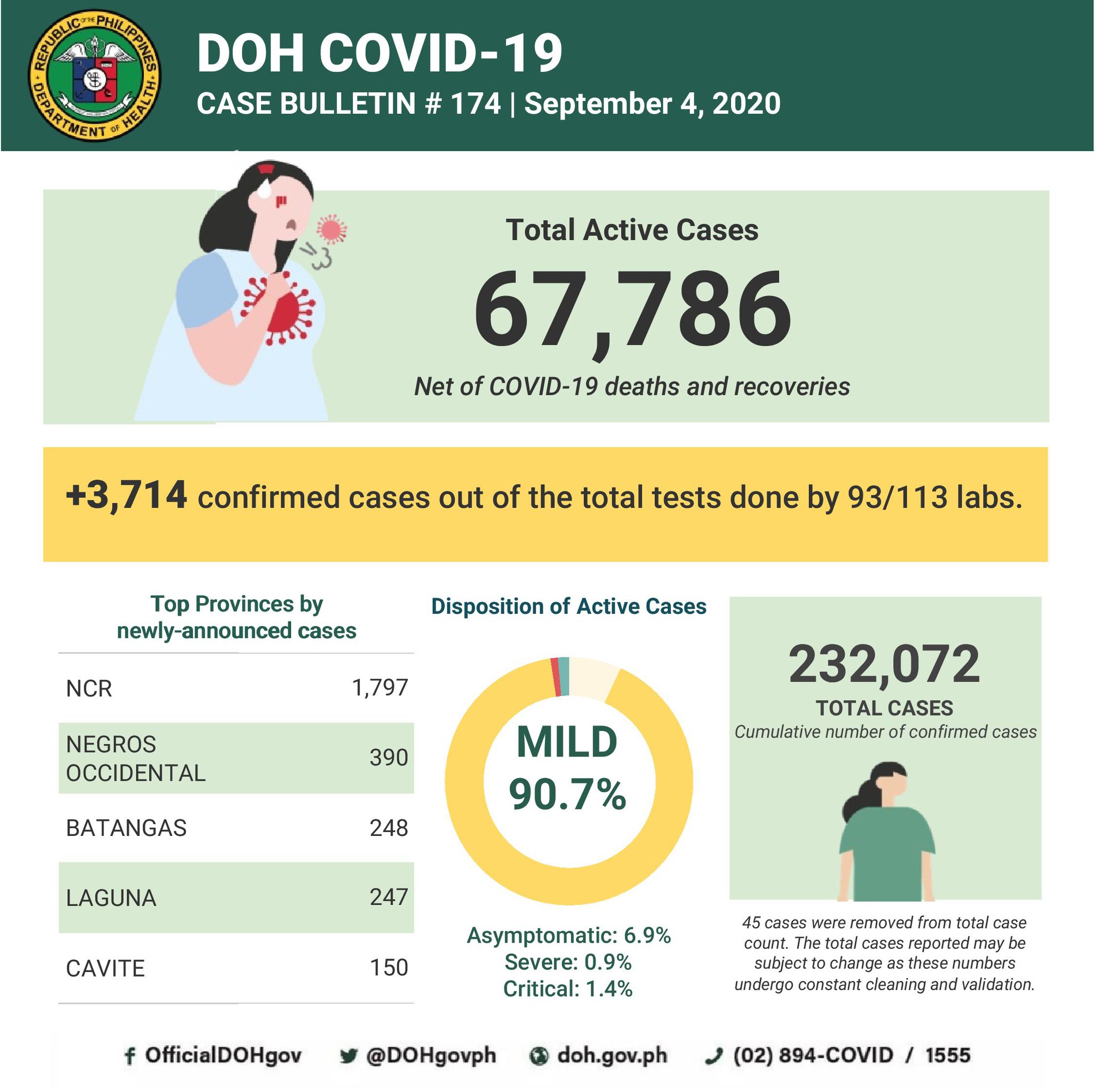 The DOH said the 3,714 additional cases reported today were from total tests done by 93 out of 113 labs.