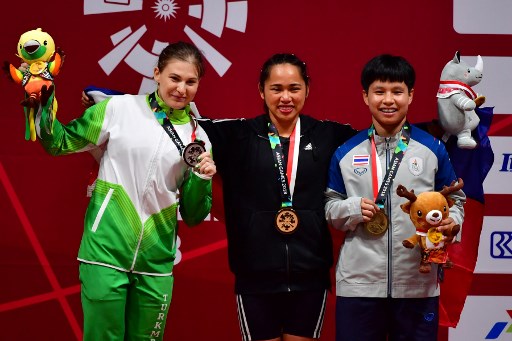 Diaz, who won a silver medal in the 2016 Olympics in Rio de Janeiro, dominated the women’s 53-kilogram division, lifting a total of 207 kilograms— 92 kilograms in the snatch and 115 kilograms in the clean and jerk.