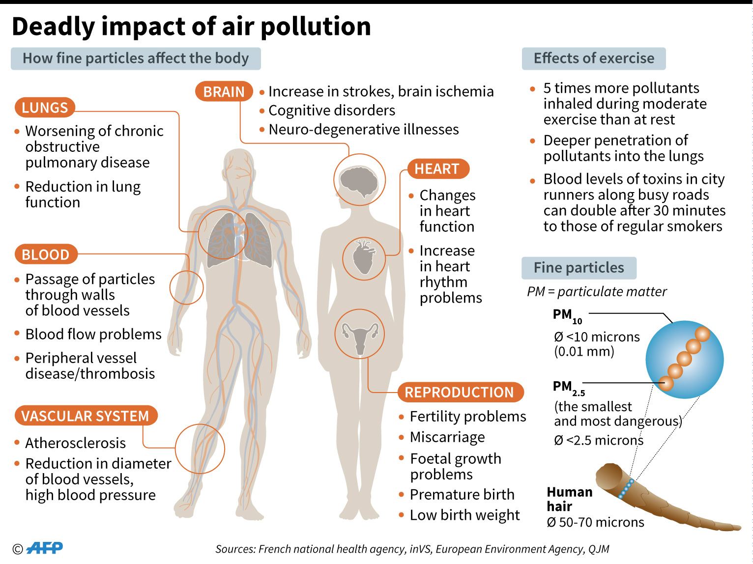 “Air pollution is a larger public health risk than tobacco smoking,” lead author Jos Lelieveld of the Max Planck Institute in Mainz, Germany told AFP.
