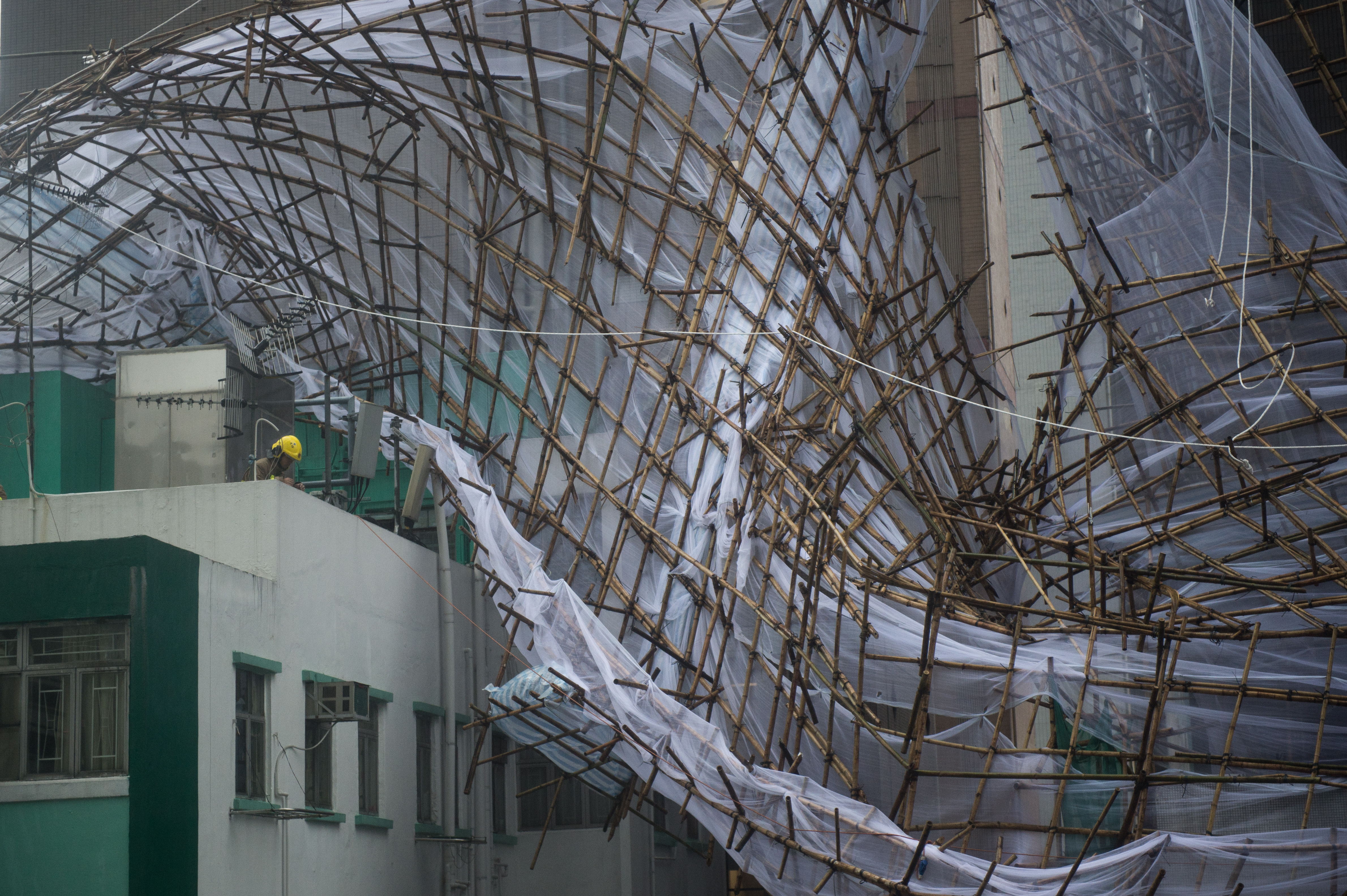 Gusts of 151 kilometers (93 miles) per hour whipped the city and rain lashed down during the night, leaving three people injured and a trail of fallen trees and torn-down scaffolding.