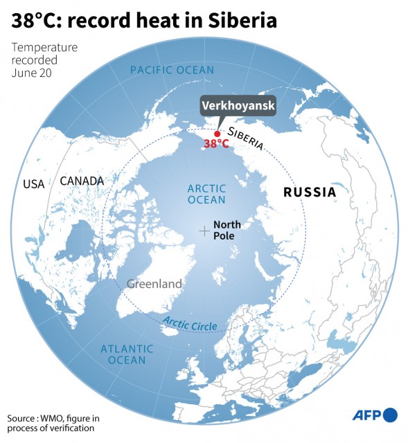 GENEVA, Switzerland (AFP) — The UN on Tuesday officially recognised the 38 degrees Celsius measured in Siberia last year as a new record high for the Arctic, sounding “alarm bells” over climate change.