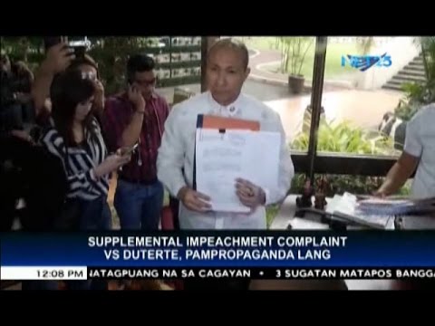 (Eagle News) — Magdalo Rep. Gary Alejano on Thursday filed a supplemental complaint to his original impeachment complaint against President Rodrigo Duterte, an act the chief presidential legal counsel described as mere “publicity and propaganda.”