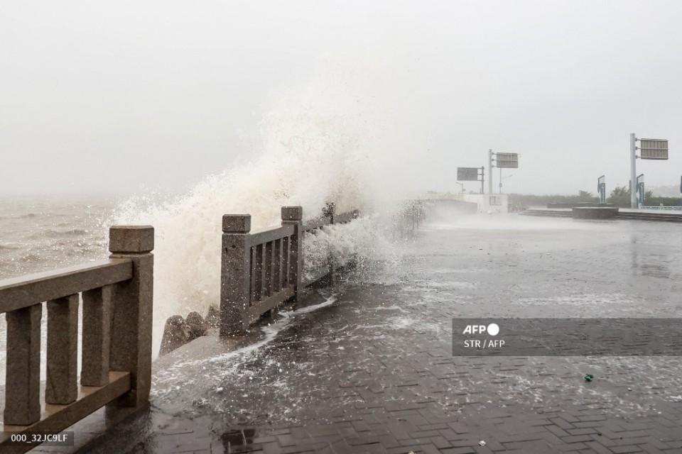Waves generated by Typhoon Muifa break along the coast in Lianyungang in China’s eastern Jiangsu province on September 14, 2022. (Photo by AFP)