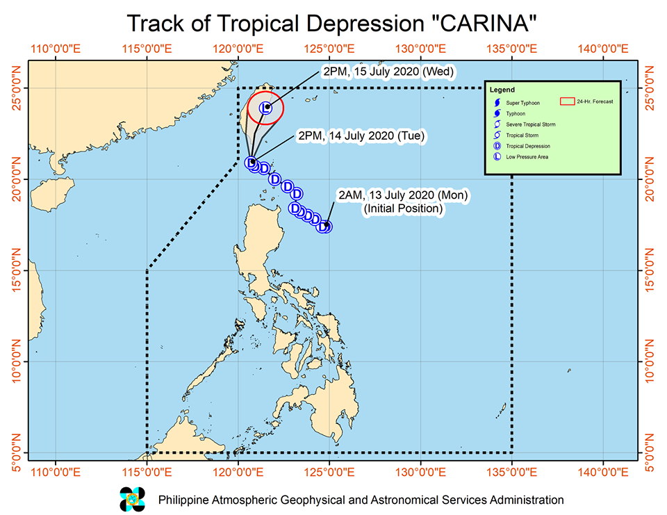 According to the weather bureau, “Carina” is forecast to weaken into a Low Pressure Area tonight or tomorrow morning.
